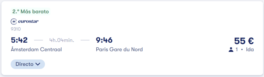 🚂 Tren directo de Amsterdam a Paris