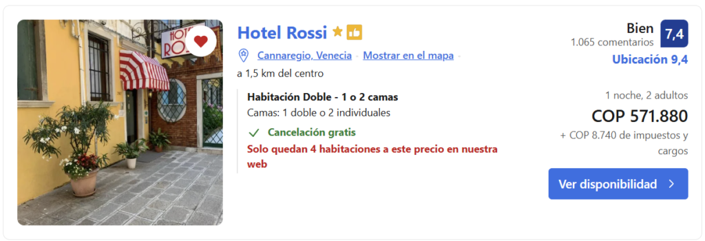 🛏️ Ubicación en hospedaje en Venecia 1 noche