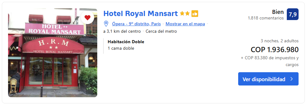 🛏️ Ubicación en hospedaje de Paris 3 noches