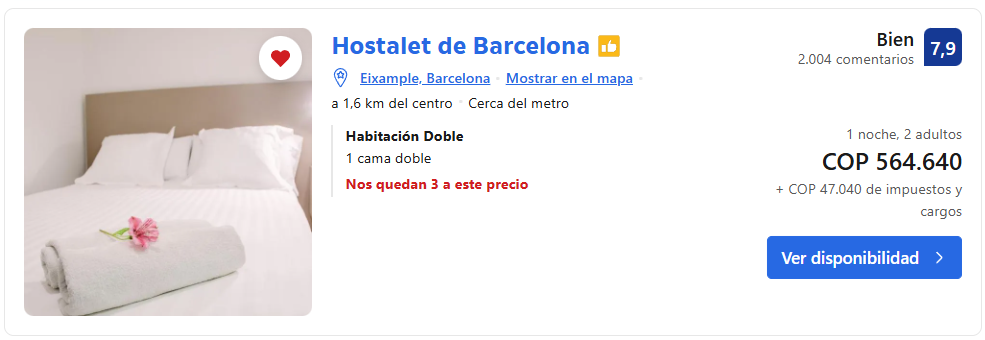 🛏️ Ubicación en hospedaje de Barcelona 1 noche