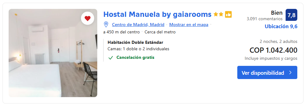 🛏️ Ubicación en hospedaje Madrid 2 noches