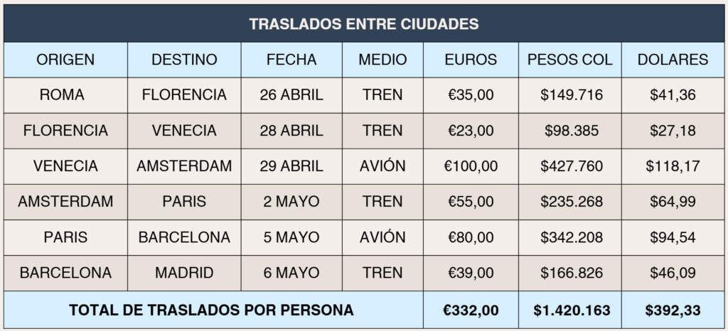 💵 Presupuesto de viaje: $13.000.000 de pesos colombianos – €3.000 euros – $3.600 dólares