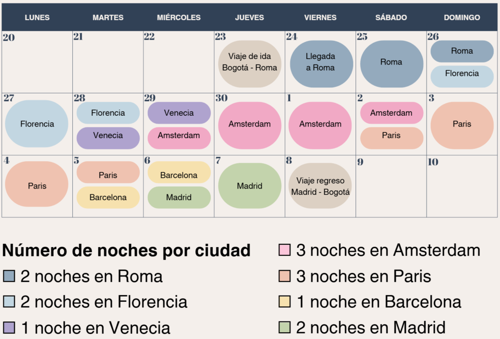🗺️ Ciudades: Roma, Florencia, Venecia, Amsterdam, Paris, Barcelona, Madrid