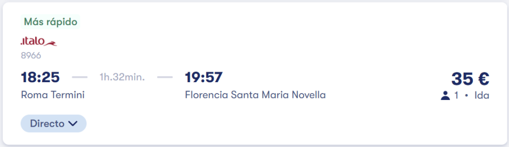 🚂 Tren directo de Roma a Florencia