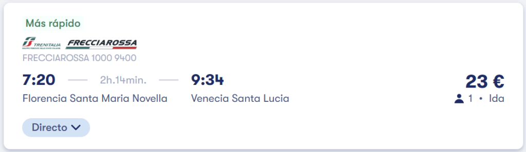🚂 Tren directo de Florencia a la Isla de Venecia